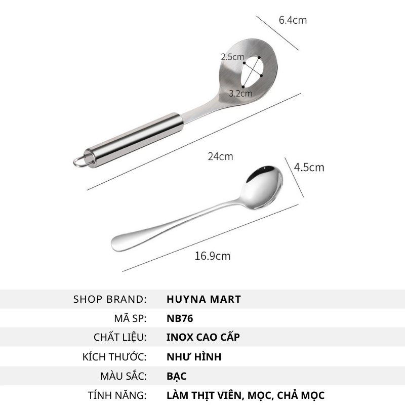 Muôi Nặn Thịt Viên, Dụng Cụ Làm Món Mọc, Chả Viên Chất Liệu Inox Cao Cấp Huyna Mart NB76Thông tin sản phẩm: