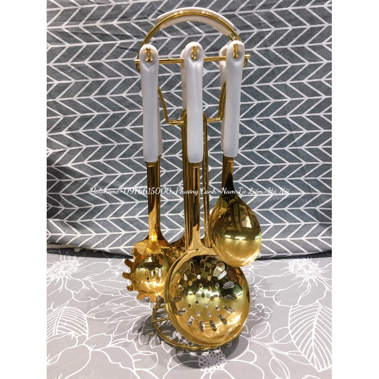 BỘ MUÔI, THÌA NẤU ĂN CÁN SỨ CÓ GIÁ TREO🍀 SẢN PHẨM GỒM