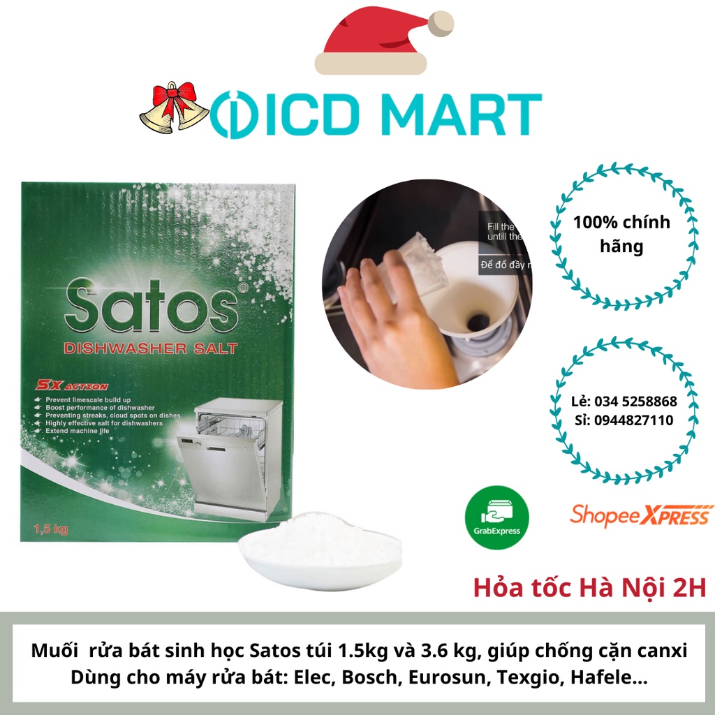 Nhà cửa & Đời sống > Dụng cụ nhà bếp > Khác || Muối rửa bát Satos 1.5kg dành cho máy rửa bát, với độ tinh khiết 99.4%, đạt tiêu chuẩn hạng A của Thổ Nhĩ KỳCòn hàng