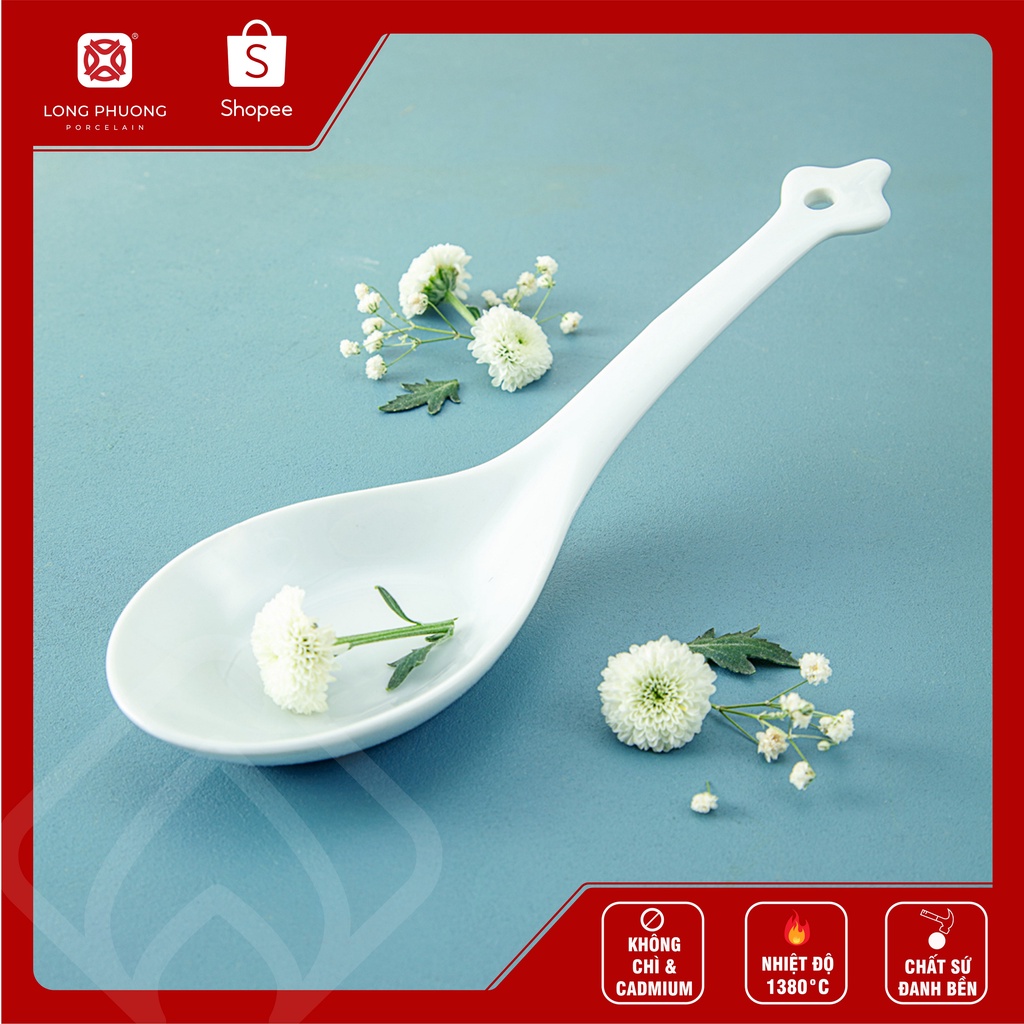 Muôi Thẳng Sứ Long Phương - Muôi Canh, Thìa Sứ Men Trắng Cao Cấp