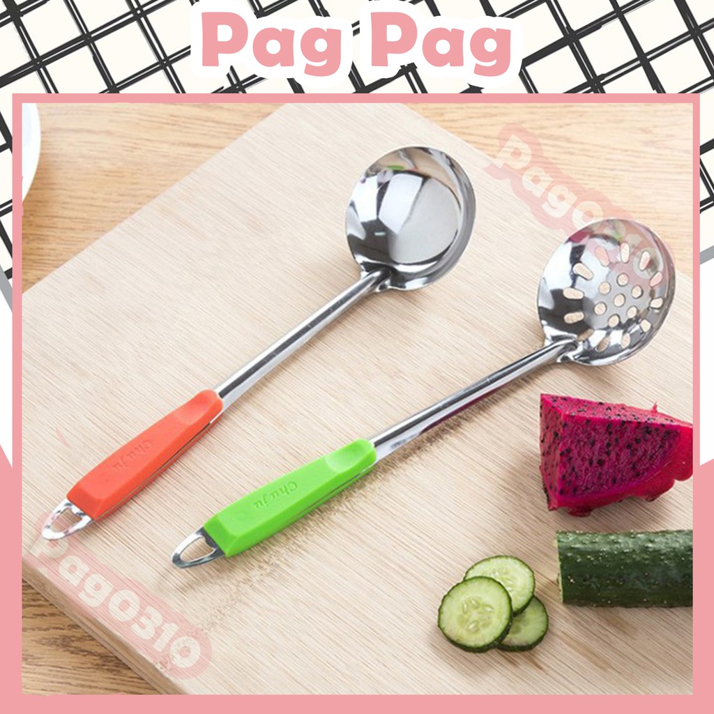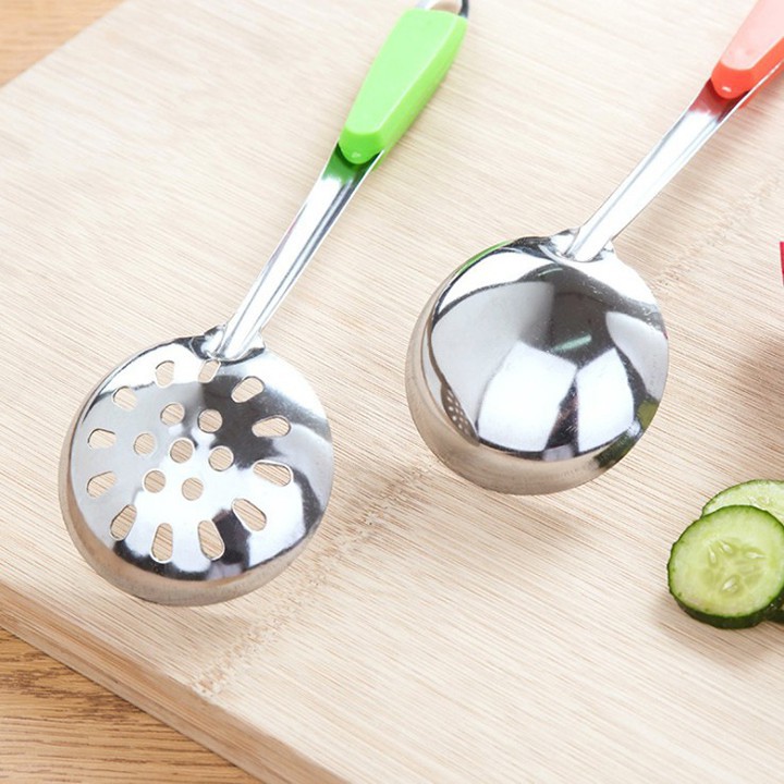 Nhà cửa & Đời sống > Dụng cụ nhà bếp > Cây vét bột & đồ gắp thức ăn || Bộ Muôi Thìa Ăn Lẩu Inox Không Rỉ 2 Loại Muôi Thủng Có Lỗ / Muôi Liền Múc Canh Cán Bọc Nhựa cách Nhiệt Cách ĐiệnCòn hàng