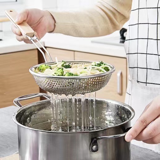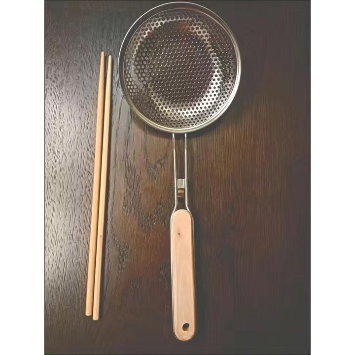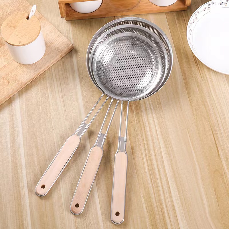 Muôi thủng inox cán gỗ ăn lẩu cao cấp loại to tay cầm cách nhiệt