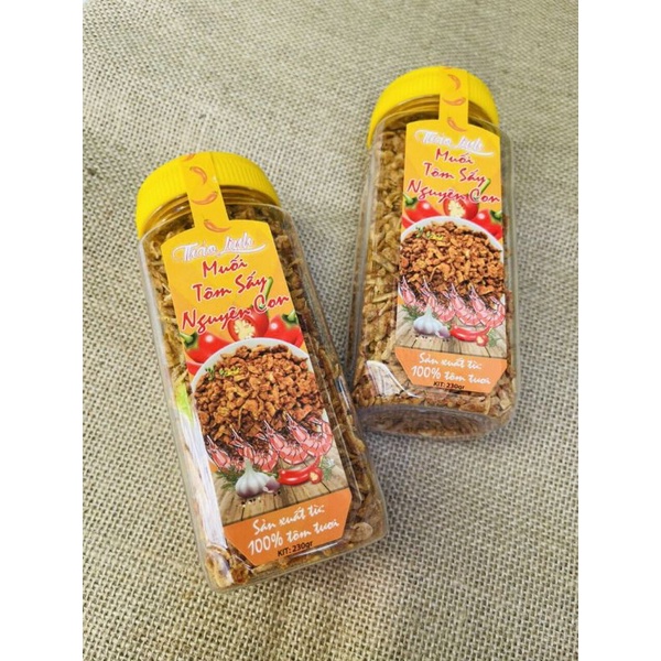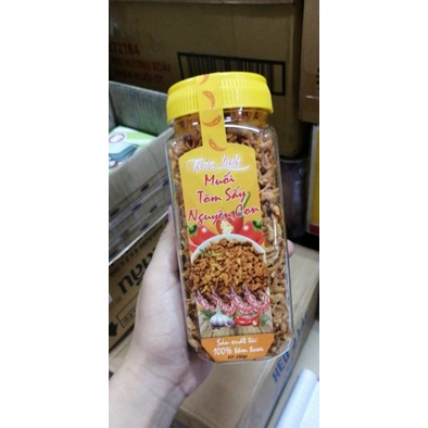 muối tôm sấy nguyên con vị muối thấm đều vào từng con ruốc giòn vùa miệng có thể chấm trái cây, cuốn bánh tráng hoặc trộn cơm nóng là ngon không tả nối luôn khách nhéhộp to đùng 230gr
