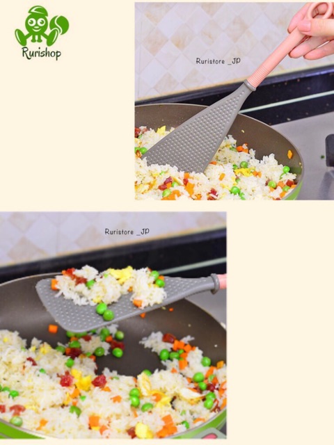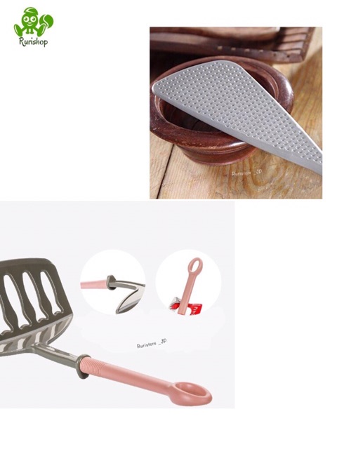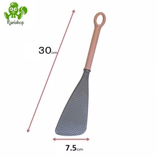 • Chi tiết sản phẩm: sản phẩm có lớp chống dính và các chấm tròn trên bề mặt giúp không bị trầy xước bề mặt chảo, phần lưỡi dài dễ đảo, trộn thức ăn. Nhựa chịu nhiệt lên tới 200 độC, an toàn khi nấu nướng. Cán dài, thuận tiện cầm, chắc tay. Có móc treo tiện lợi, giúp tiết kiệm không gian bếp dễ dàng tìm thấy khi cần sử dụng.