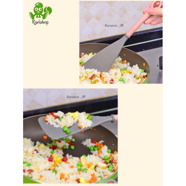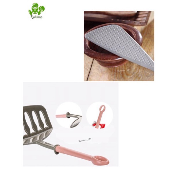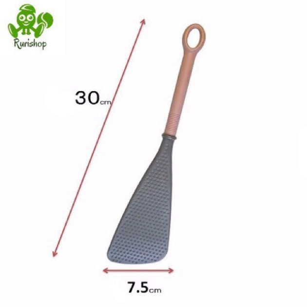 • Chi tiết sản phẩm: sản phẩm có lớp chống dính và các chấm tròn trên bề mặt giúp không bị trầy xước bề mặt chảo, phần lưỡi dài dễ đảo, trộn thức ăn. Nhựa chịu nhiệt lên tới 200 độC, an toàn khi nấu nướng. Cán dài, thuận tiện cầm, chắc tay. Có móc treo tiện lợi, giúp tiết kiệm không gian bếp dễ dàng tìm thấy khi cần sử dụng.