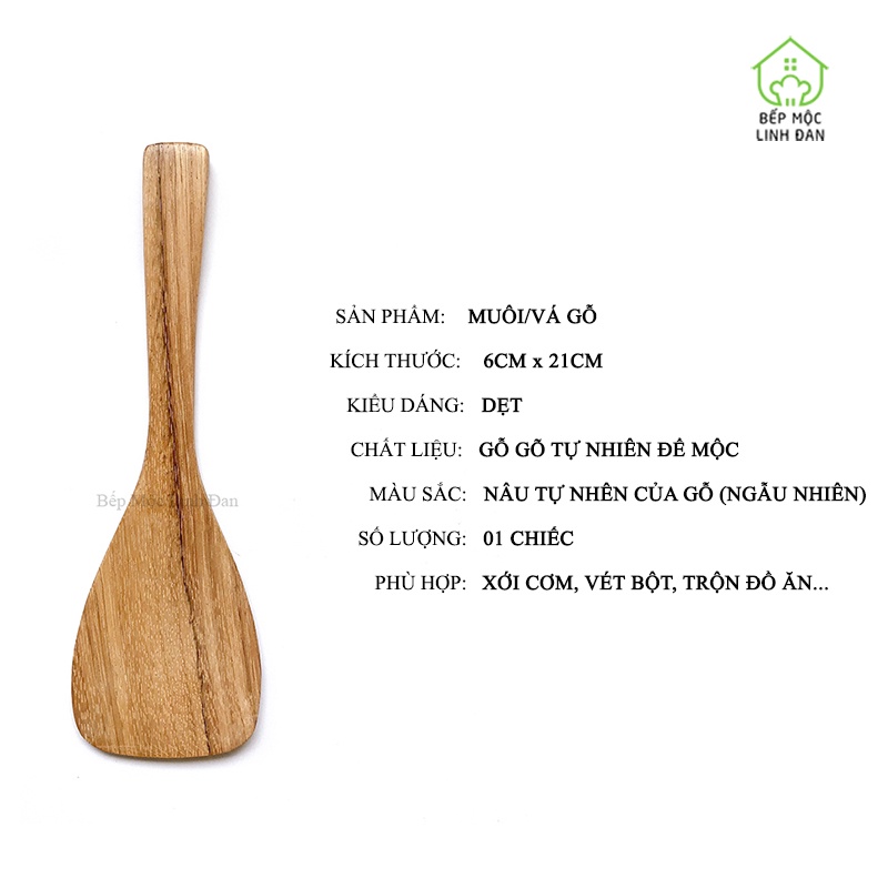 Muôi (vá) làm từ gỗ gõ tự nhiên, không ngâm tẩy hóa chất, có ưu điểm chất gỗ cứng bền, không dễ bị nứt vỡ hay xước dăm; vân gỗ đẹp, có khả năng chống lại mối mọt cao và chịu được nhiệt độ cao khi xào nấu, không tiết ra chất độc khi gặp nhiệt độ cao.🌲 Miêu tả sản phẩm:
