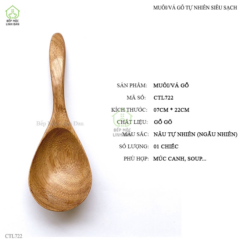 Muôi (vá) làm từ gỗ gõ tự nhiên, không ngâm tẩy hóa chất, có ưu điểm chất gỗ cứng bền, không dễ bị nứt vỡ hay xước dăm; vân gỗ đẹp, có khả năng chống lại mối mọt cao và chịu được nhiệt độ cao khi xào nấu, không tiết ra chất độc khi gặp nhiệt độ cao.🌲 CHI TIẾT SẢN PHẨM: