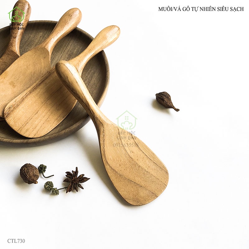 Giới thiệu [Mã BMBAU50 giảm 10% đơn 99k] Muôi/vá gỗ tự nhiên_Xới cơm, trộn đồ ăn, vét bột (CTL731-Dáng tròn)