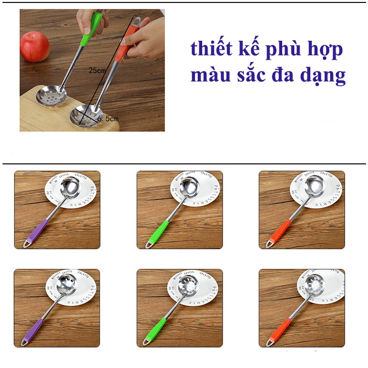 - Kích thước: đường kính muôi 6.5 cm, dài 25 cm.
