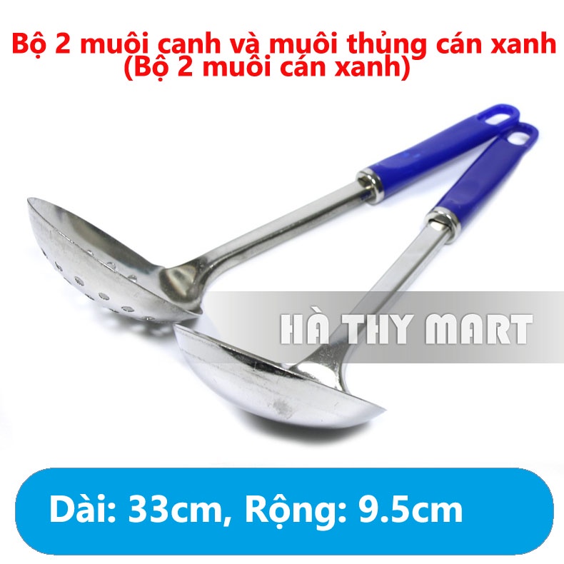✅ LOẠI 6: Bộ 2 muôi canh và muôi thủng cán xanh