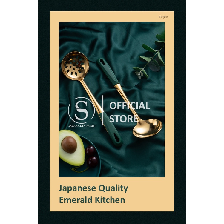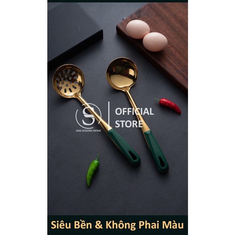 CỬA HÀNG NỘI THẤT CAO CẤP SAM GOLDEN HOME DECORMuôi Vá Múc Canh Vàng Inox 304 Siêu Bền Cao Cấp Cán Xanh Lá Cổ Vịt Emerald (2 Mẫu)