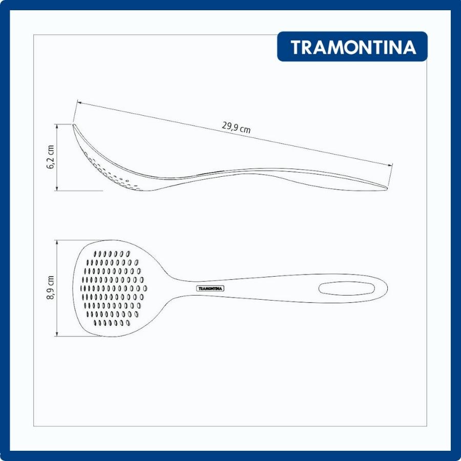 Muôi vớt đồ ăn Tramontina 25158 nhiều lỗ chất liệu nhựa PA cao cấp ba màu 30cm nhập khẩu chính hãng từ Brazil có bảo hànhTramontina là thương hiệu gia dụng hàng đầu của đất nước Brazil với lịch sử hình thành và phát triển hơn 100 năm. Hiện nay các sản phẩm thuộc thương hiệu Tramontina đã có mặt tại hơn 120 quốc gia với các mặt hàng đa dạng từ đồ gia dụng, tiện ích nhà bếp, đồ nội thất bằng gỗ và nhựa, dụng cụ nông nghiệp và làm vườn, đến dụng cụ bảo trì xây dựng, công nghiệp và ô tô…