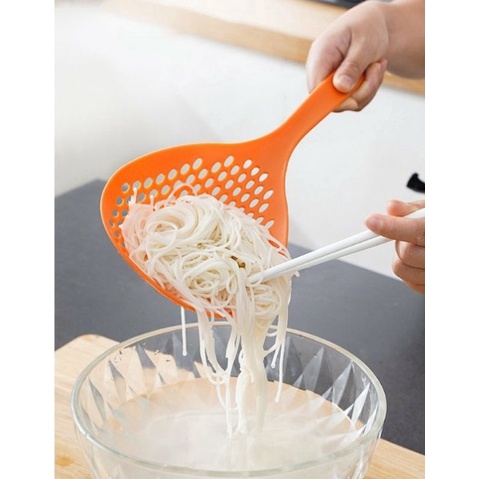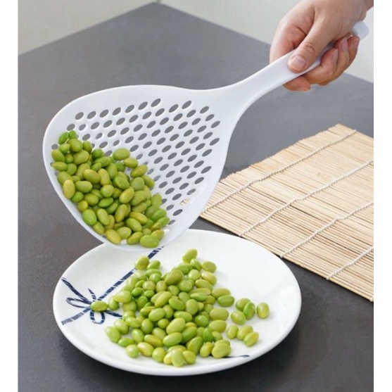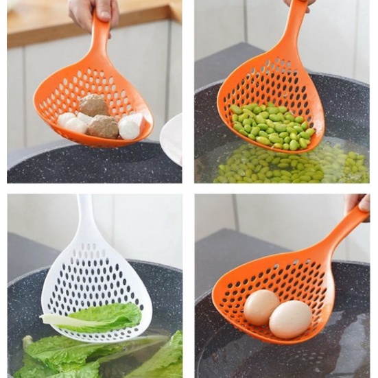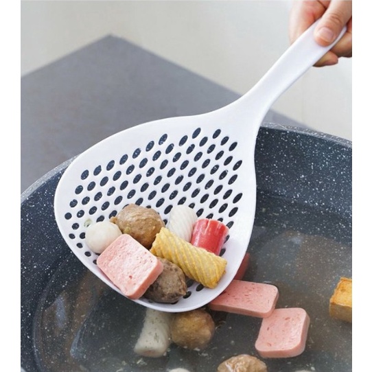- Muỗng nhựa múc đồ có lỗ siêu tiện dụng tránh đọng nước. dễ dàng vớt đồ thực phẩm như rau củ hoặc mì