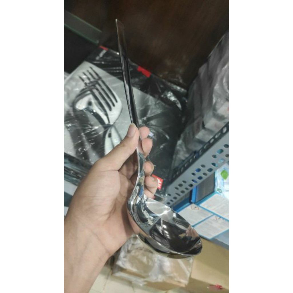 - Muôi được thiết kế vừa vặn để trong bát tô múc canh.
