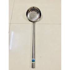Muôi lỗ thủng inox loại dày dặn, đảm bảo vệ sinh an toàn thực phẩm, được ưa dùng trong các gia đình, bếp ăn tập thể của trường học, bệnh viện...môi số 10 = dài 50x miệng 13,5cm.