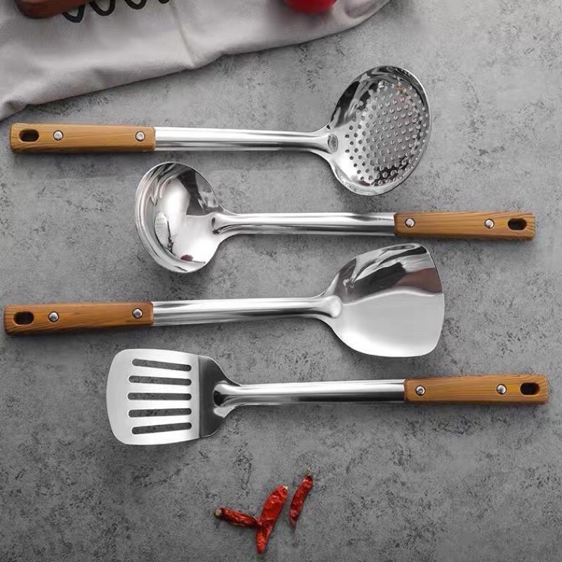 Nhà cửa & Đời sống > Dụng cụ nhà bếp > Cây vét bột & đồ gắp thức ăn || muôi xẻng nấu bếp bằng inox 304 cán gỗ -TCCòn hàng