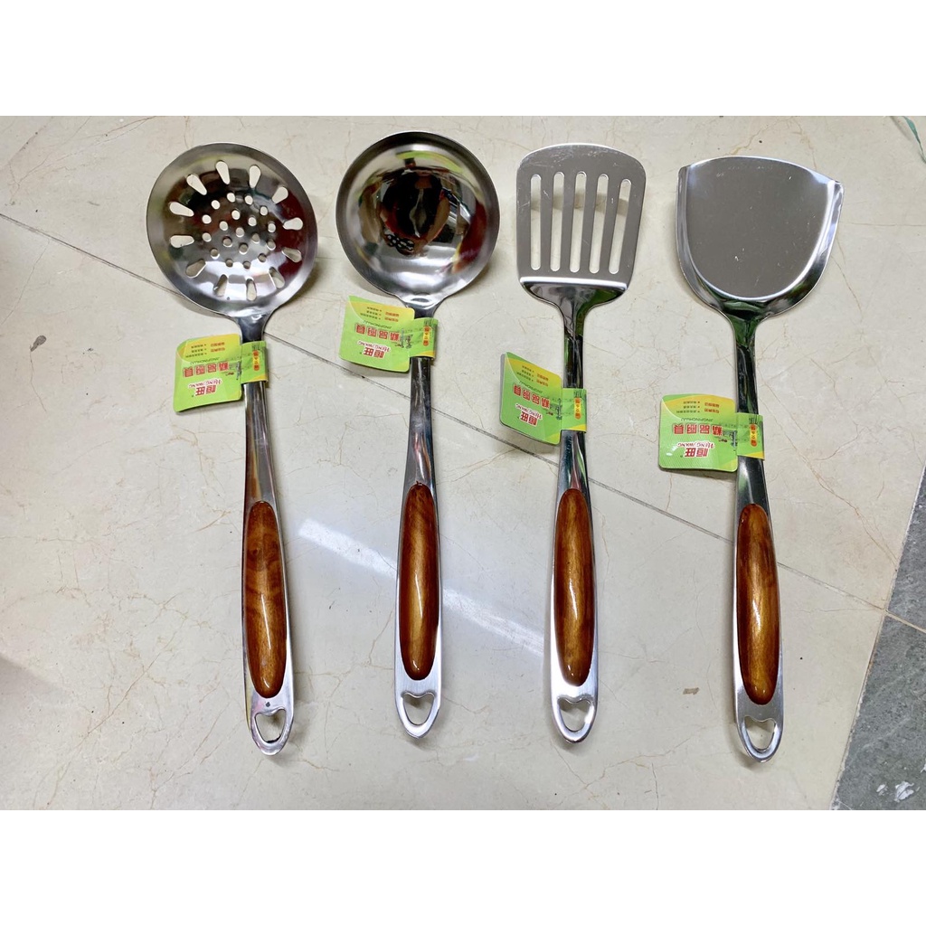 Muôi xẻng nấu bếp cán ốp nâu 100% inox 304