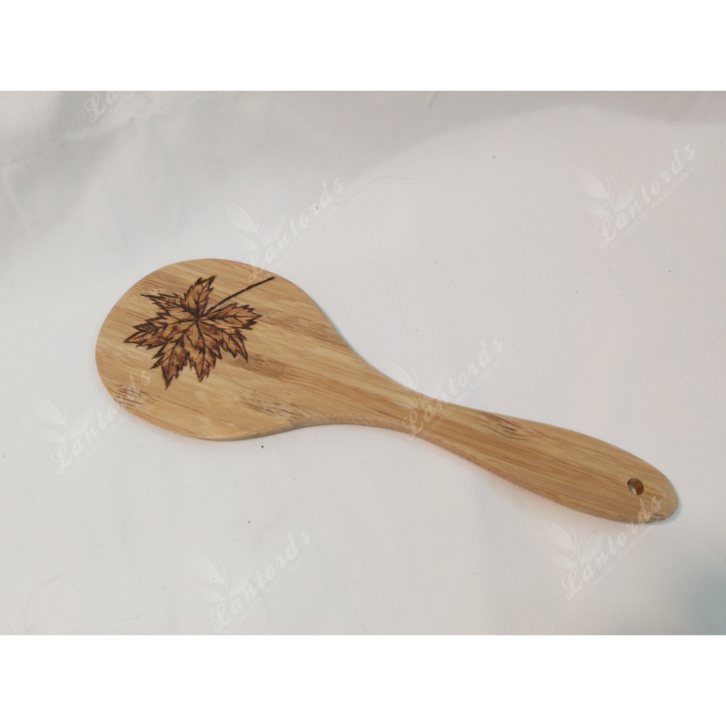 Muôi xới cơm làm từ nguyên liệu tre ép thân thiện môi trường, đã trải qua quá trình hấp sấy kỹ lưỡng để chống ẩm mốc và mối mọt, sản phẩm được bao phủ bởi lớp sơn gốc nước an toàn cho thực phẩm, tuy nhiên để bảo quản sản phẩm tốt hơn phải sử dụng thường xuyên và luôn để khô ráo nhanh nhất có thể, tránh tiếp xúc lâu với nước, sản phẩm mới mua về nên trụng sơ qua nước sôi trước khi sử dụng. Sản phẩm được khắc vẽ thủ công hình chiếc lá phong độc đáo riêng biệt, không phai khi sử dụng lại an toàn cho sức khỏe vì không dùng màu.Kích thước: dài 18-20cm, rộng 7cm
