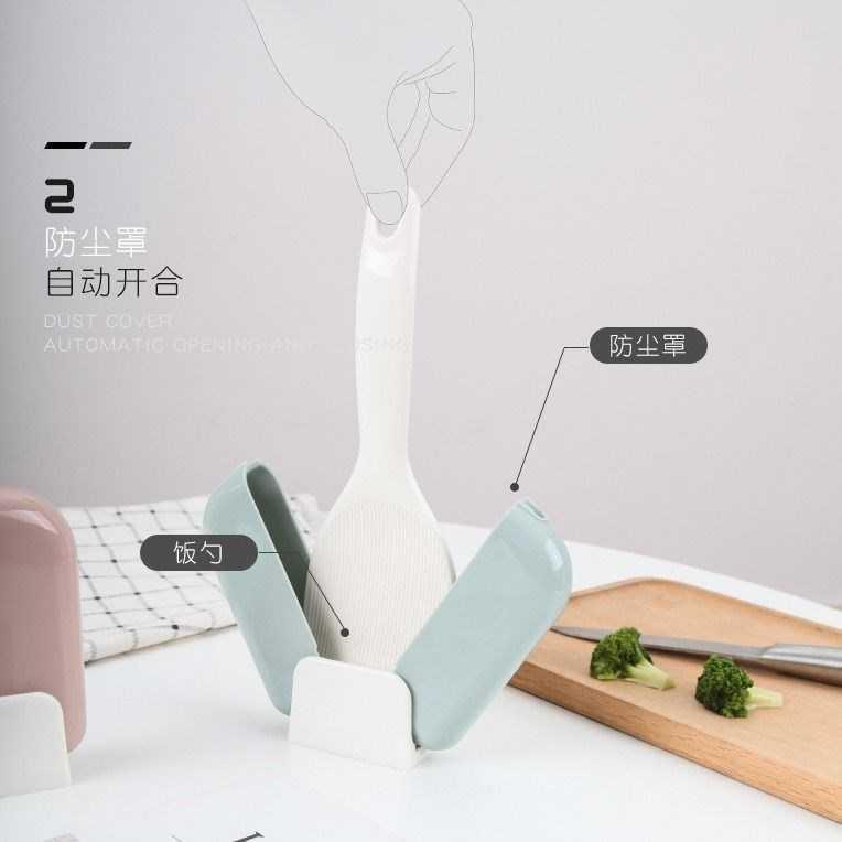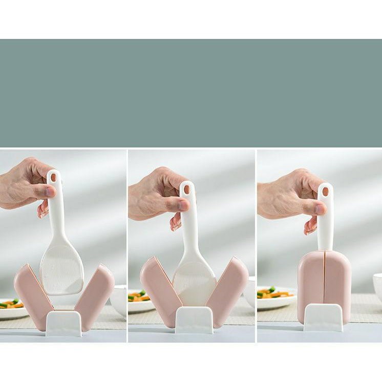Muôi xới cơm kèm giá đựng Dụng cụ giữ vá múc cơm có móc cài thành nồi tiện lợiĐặc điểm