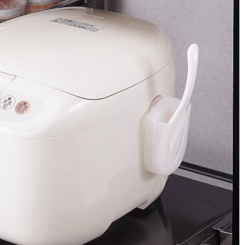 - Công dụng: Muôi xới cơm được thiết kế đặc biệt để chống dính cơm. Giá đựng có hít chân không có thể hít dính vào nồi cơm.