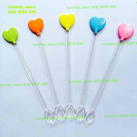 Muỗng 22cm trái tim đủ màu, màu chrome siêu nhũ, tim xi nhựa pha chế que khuấy thìa bar sao nơ - Heart spoon