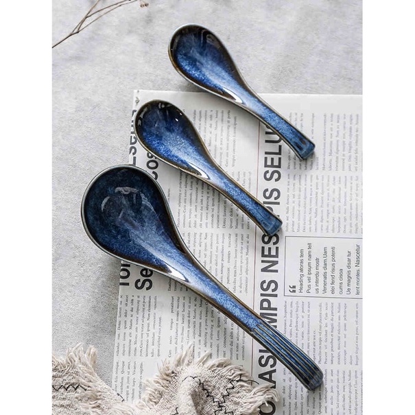 Nhà cửa & Đời sống > Bộ đồ bàn ăn > Bộ dao kéo || Muỗng Canh, Muôi Canh thìa canh sứ, Thìa soup sứ men xanh lam hoả biến SEACòn hàng