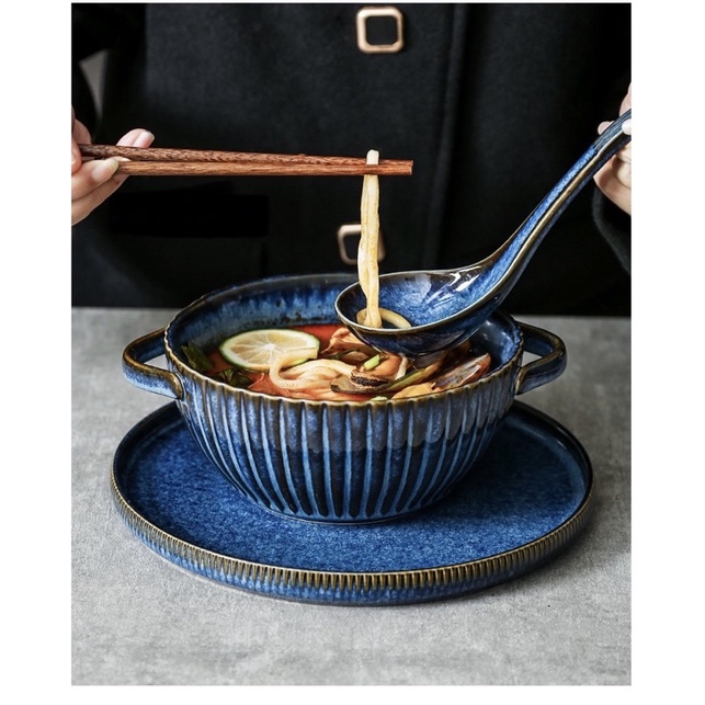 Muỗng Canh, Muôi Canh thìa canh sứ, Thìa soup sứ men xanh lam hoả biến SEA