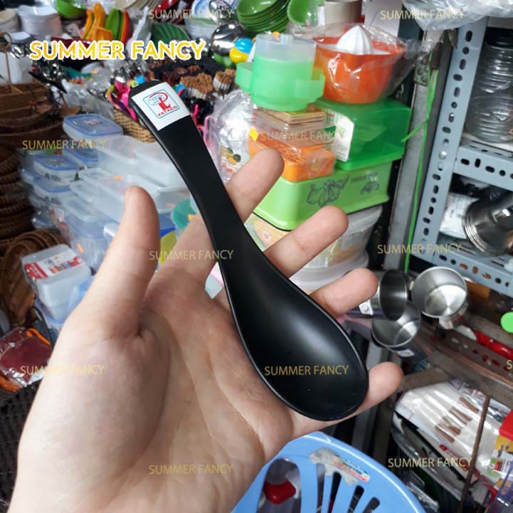 Nhà cửa & Đời sống > Bộ đồ bàn ăn > Dĩa || Muỗng cơm cong 14cm nhựa melamine phíp đen nhám, đen, nâu kem, cam, xanh lá, vàng, trắng - spoon F-No25Còn hàng