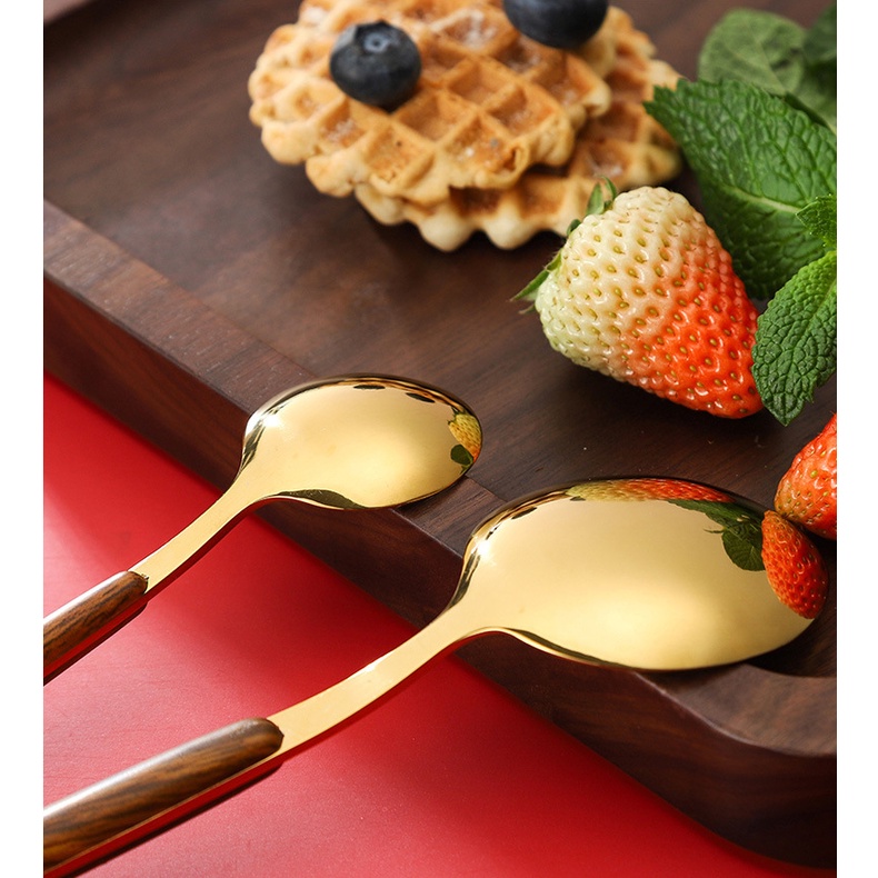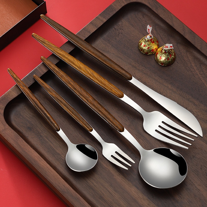 Muỗng Dao Dĩa Thìa Cafe Inox 304 cán bọc gỗ cao cấp sang trọng MDD02
