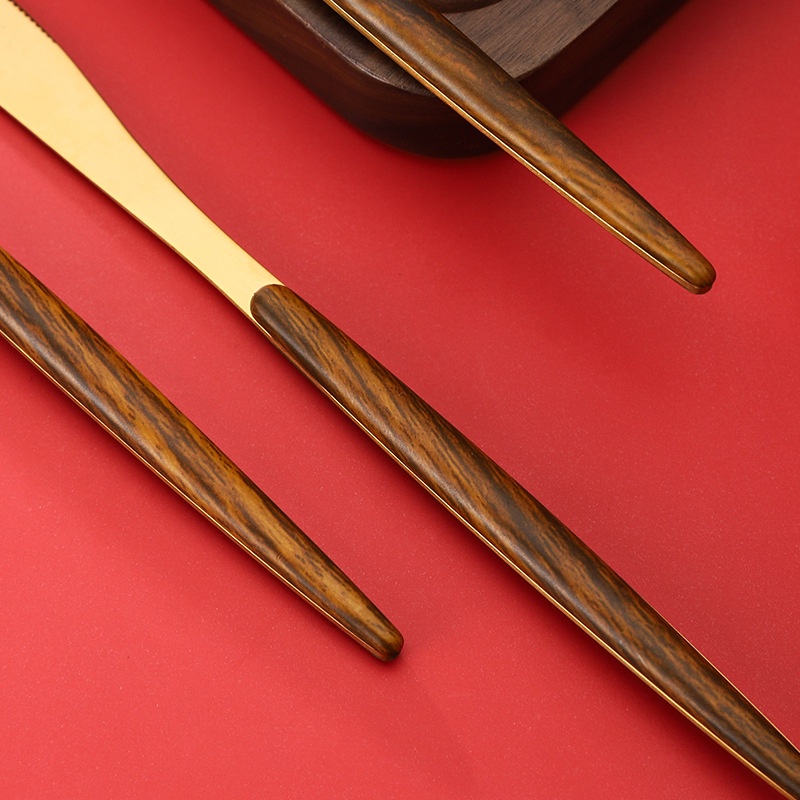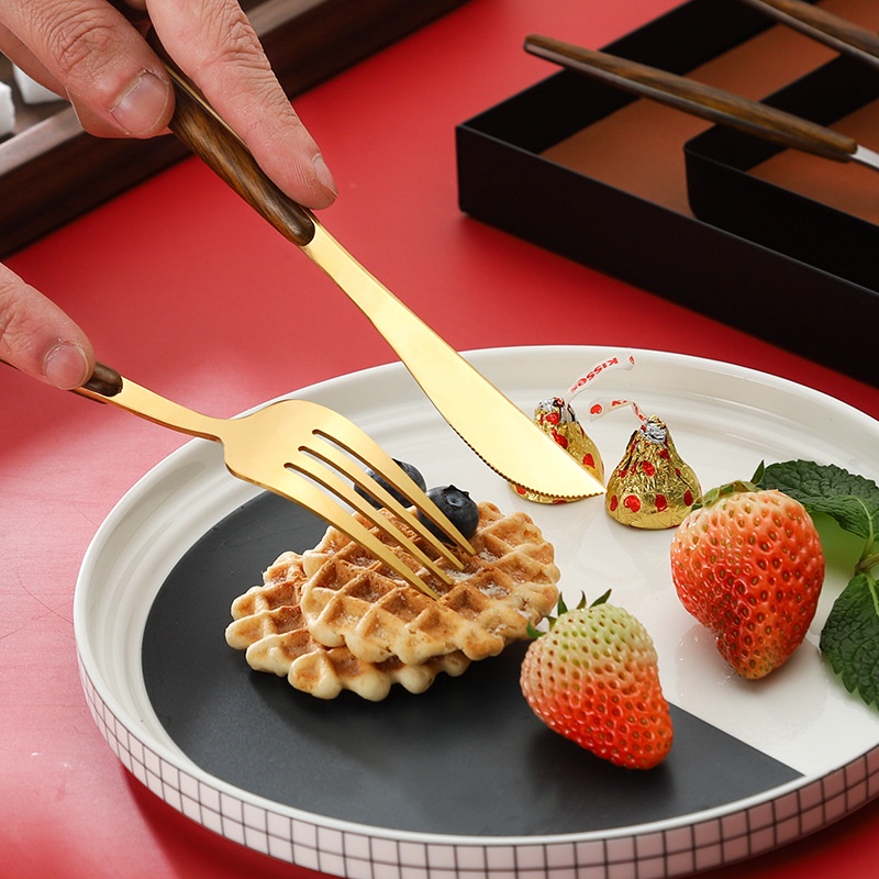 Nhà cửa & Đời sống > Bộ đồ bàn ăn > Dĩa || Muỗng Dao Dĩa Thìa Cafe Inox 304 cán bọc gỗ cao cấp sang trọng MDD02Còn hàng