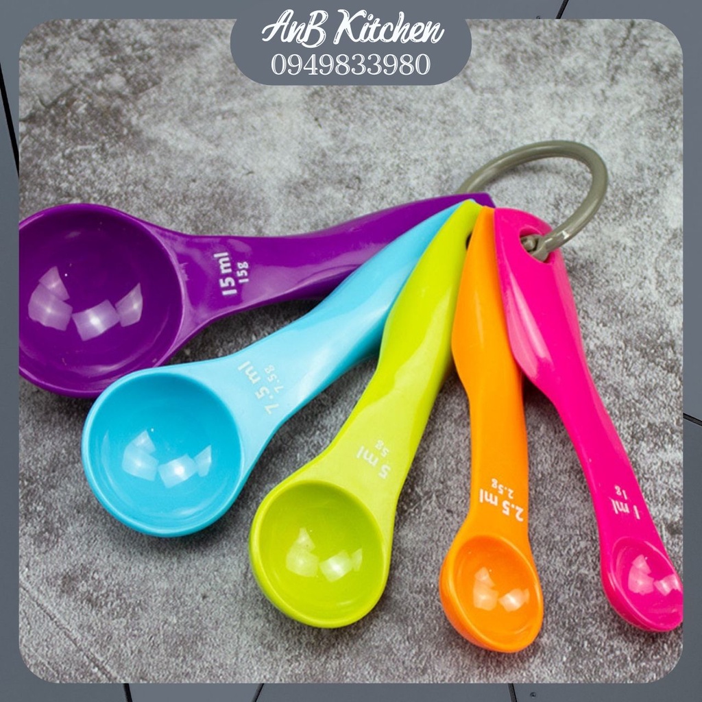 Nhà cửa & Đời sống > Dụng cụ nhà bếp > Dụng cụ đo lường || Bộ muỗng đo lường 5 sắc màu bằng nhựa tiện dụng khi làm bánhCòn hàng