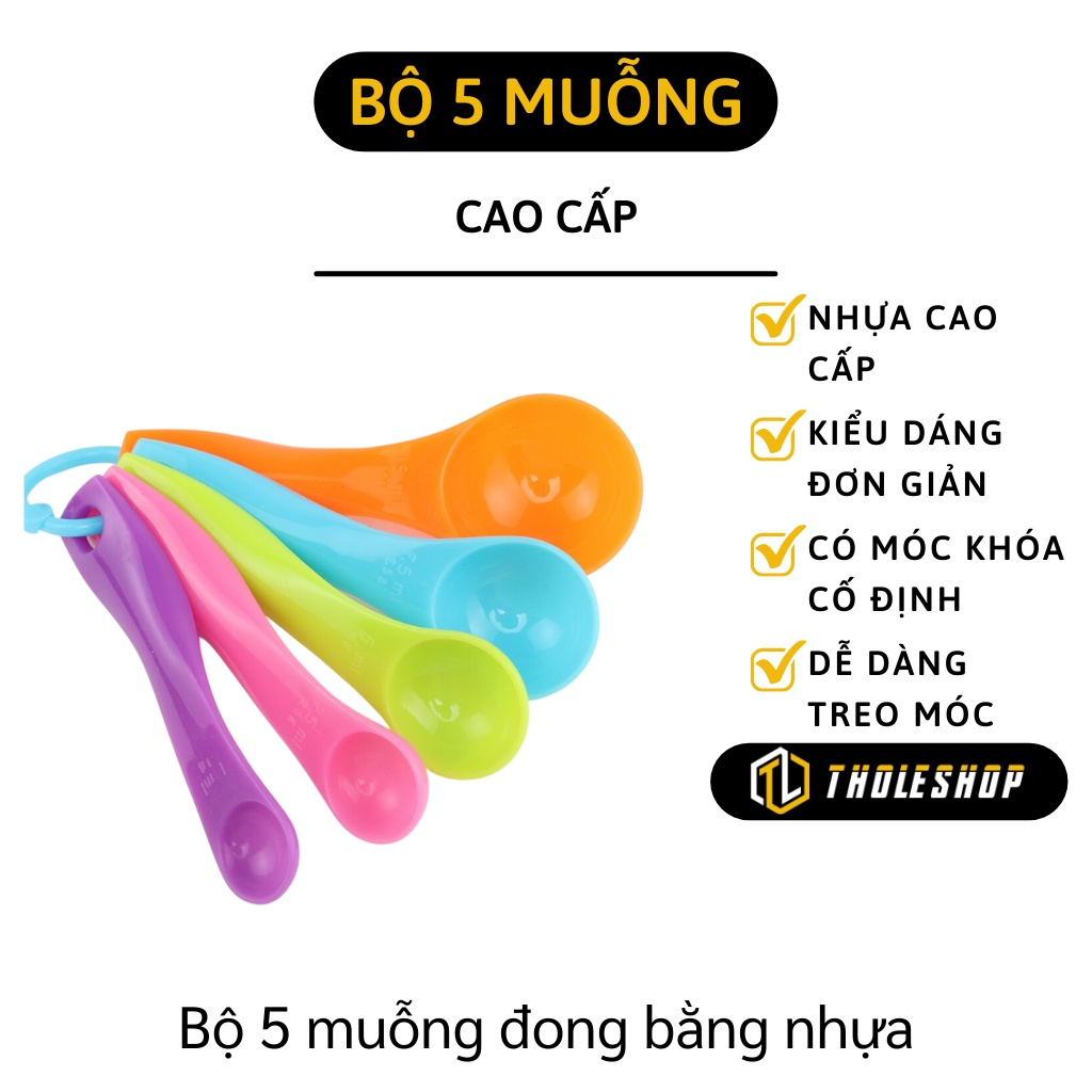 🌈 Bộ 05 muỗng đo lường bằng nhựa cao cấp thuận tiện cho bạn đo lường chính xác nguyên liệu để chế biến thức ăn.