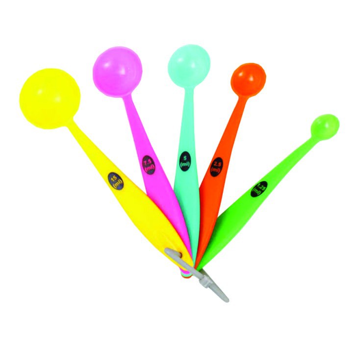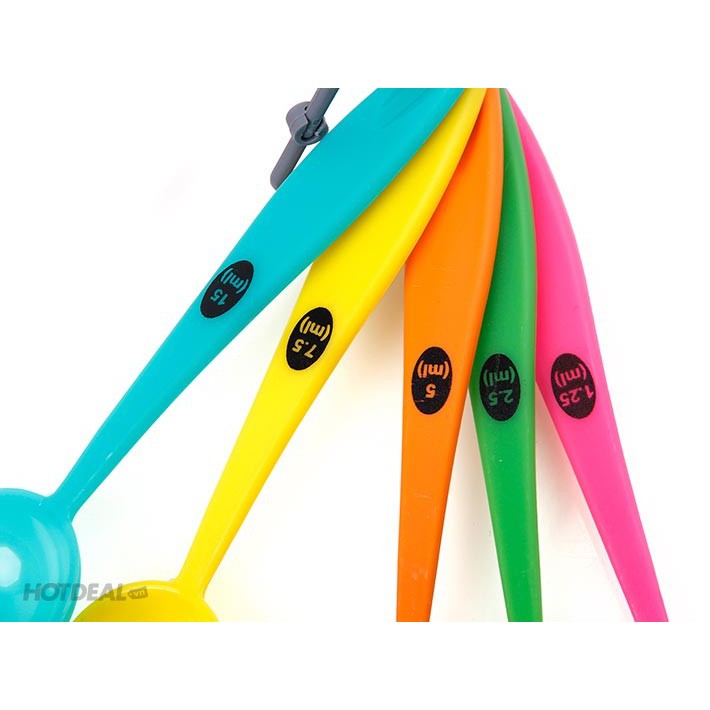 Bộ sản phẩm bao gồm 5 muỗng với 5 kích cỡ lớn nhỏ khác nhau:+ muỗng có kích cỡ 1.25 ml