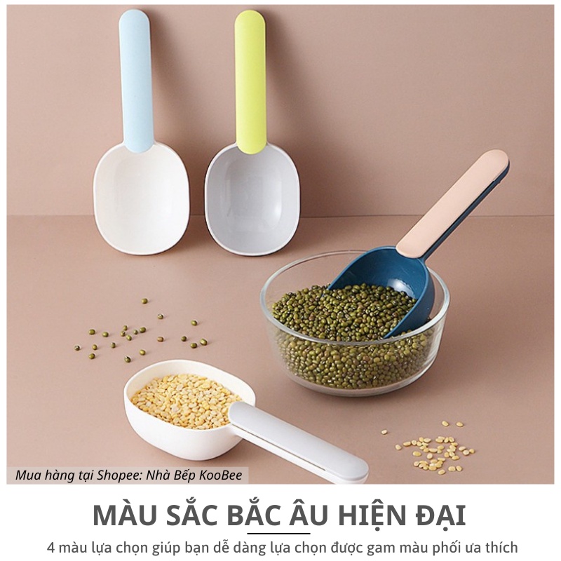 🔰TÊN SẢN PHẨM:Muỗng đong định lượng - Đồ múc gạo, thức ăn chó mèo kèm kẹp miệng túi tiện dụng KooBee (NB40)