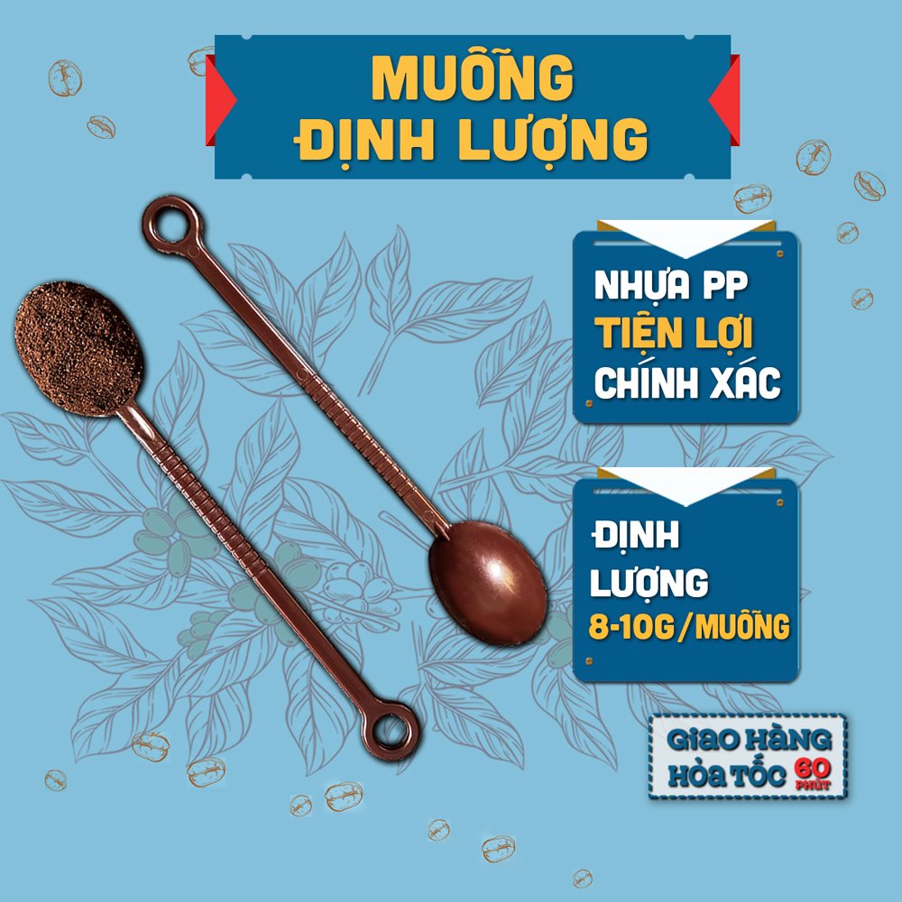 Thuận lợi, nhanh chóng, tương đối chính xác, chi phí rẻ (10k) đó là những ưu điểm vượt trội của muỗng đong định lượng cà phê Roplus Coffee. Muỗng đong định lượng cà phê giúp quý khách định lượng cà phê với số lượng ít mà không cần dùng tới cân điện tử hoặc những dụng cụ đắt tiền, vẫn hỗ trợ cho ra được những ly cà chuẩn xác, ngon và ổn định.Thông tin chi tiết muỗng đong định lượng cà phê Roplus Coffee :