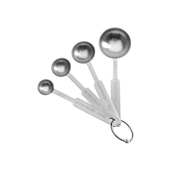 Số lượng: gồm 4 muỗng đong inoxGồm các vạch ml: 15ml, 5ml, 2.5ml, 1.25ml