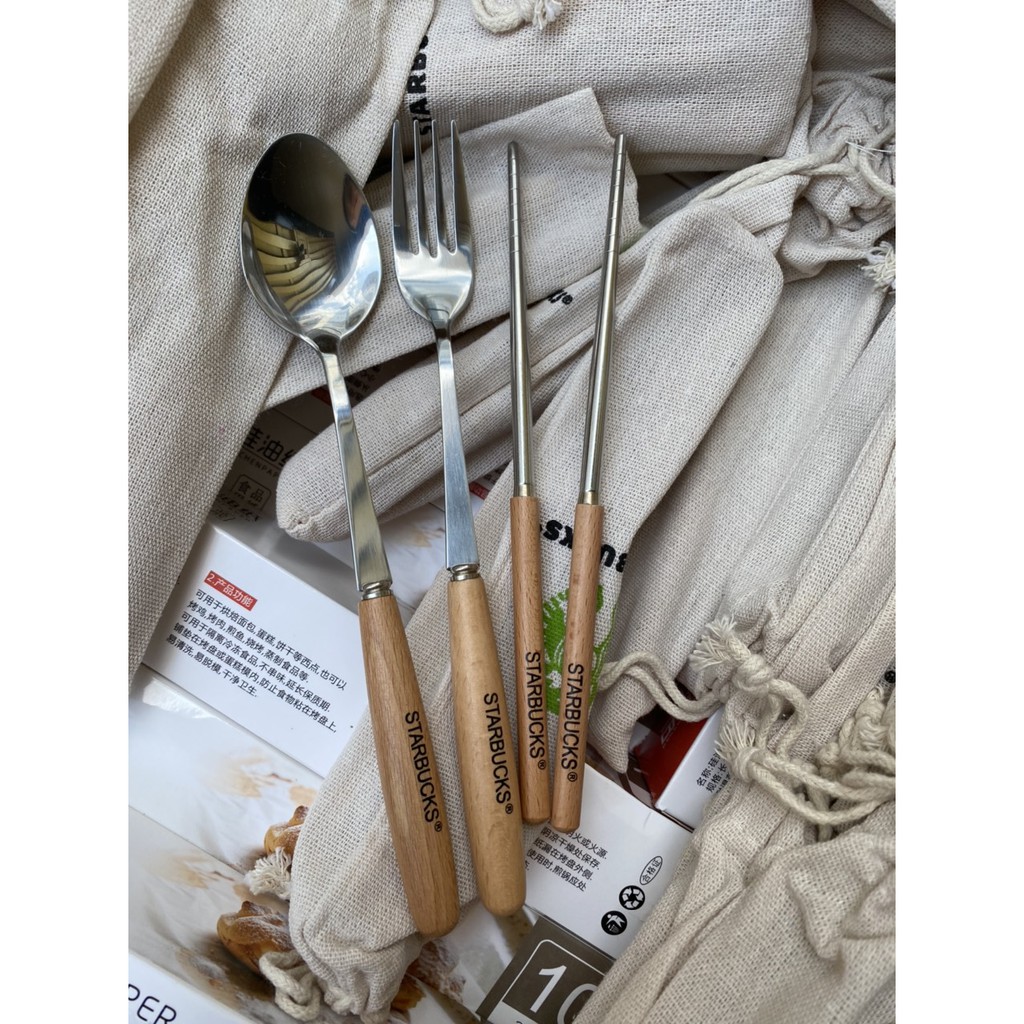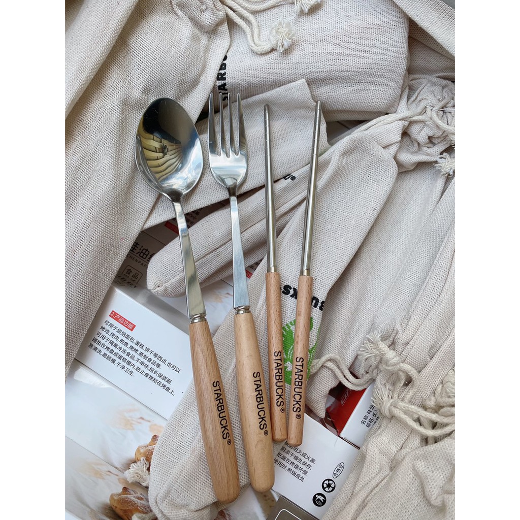 - Bộ gồm đũa, thìa và dĩa inox rất đẹp cán gỗ sồi, đựng trong 1 hộp nhựa lúa mạch sang trọng. Dùng mang cơm đi làm, mang đi du lịch hay picnic tiện lợi.