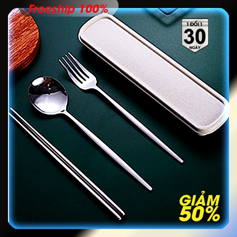 Bộ Muỗng Đũa Cơm Văn Phòng Inox 304 Loại 1 Cao Cấp Kèm Hộp Nhựa Sinh Học Lúa Mì Tặng Túi Vải