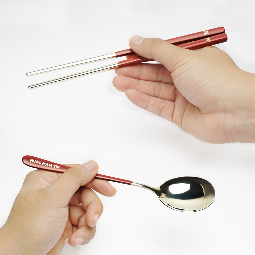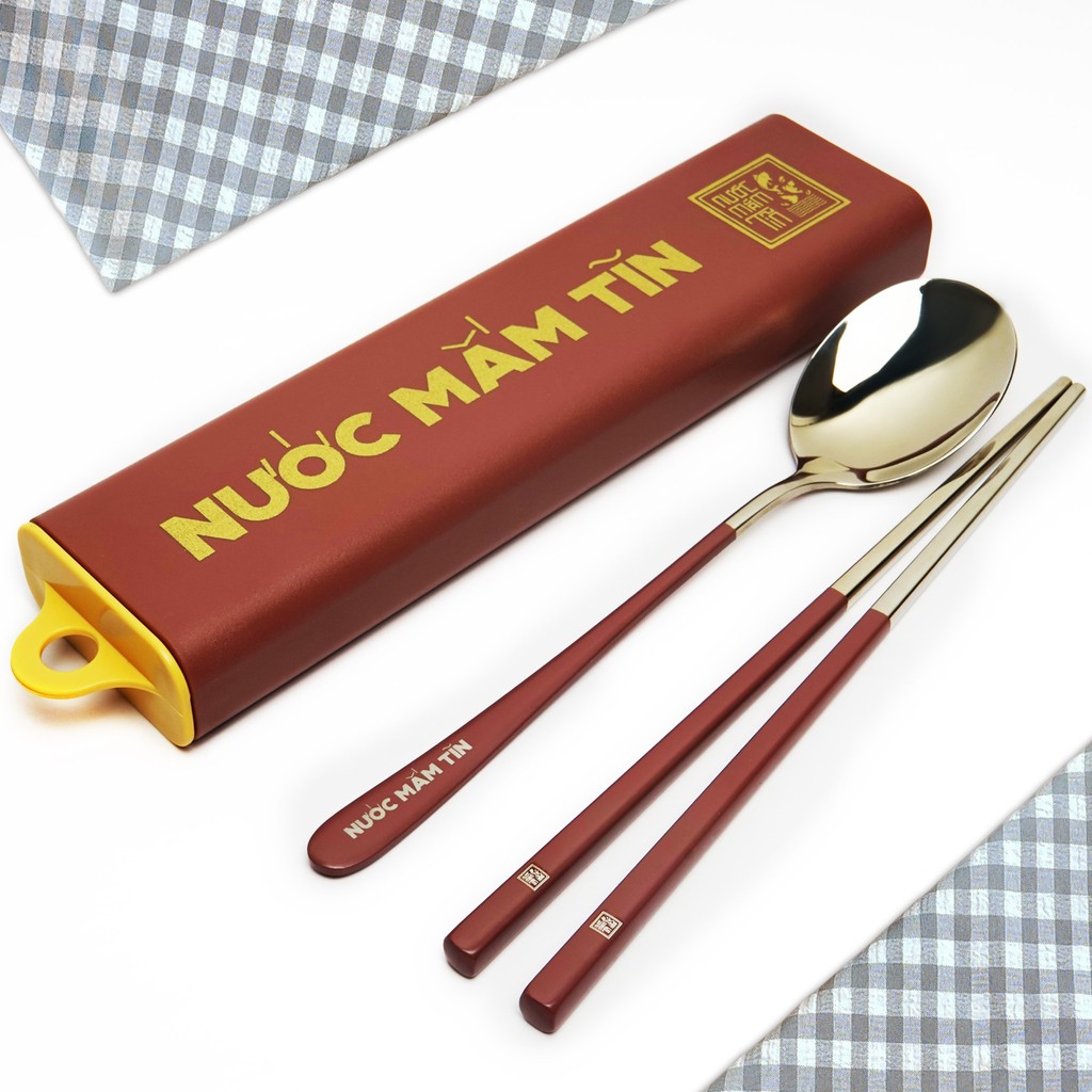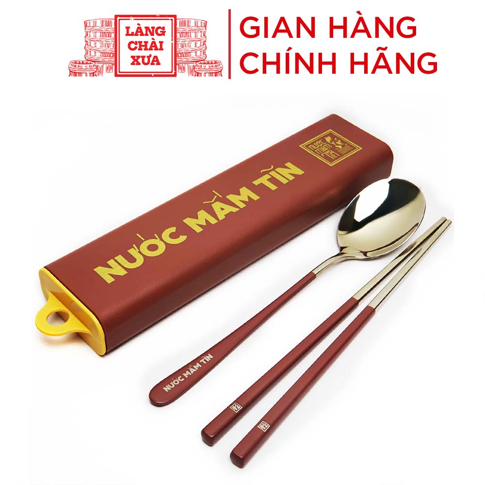 Bộ muỗng đũa Inox cao cấp không gỉ kèm hộp sang trọng Nước Mắm Tĩn (Làng Chài Xưa) du lịch, văn phòng an toàn, tiện lợi