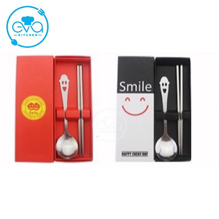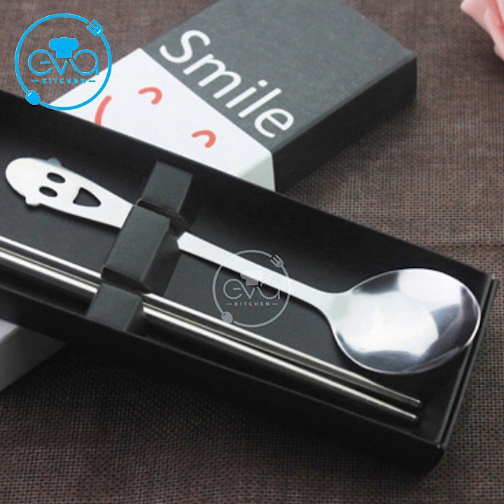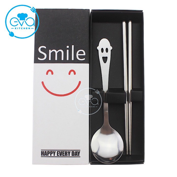 Bộ Muỗng Đũa Inox Họa Tiết Mặt Cười Kèm Hộp Đựng Sang Trọng