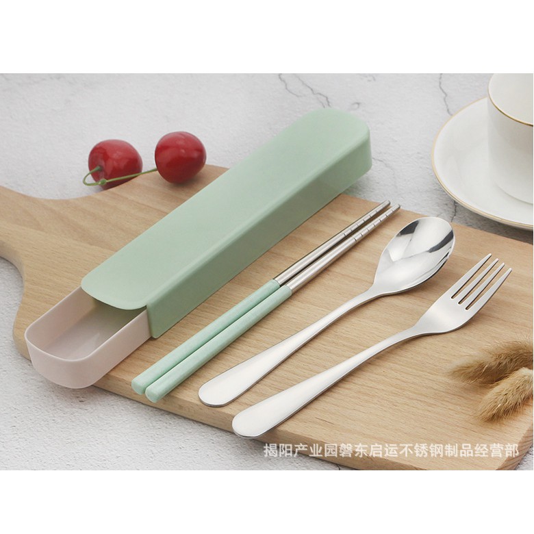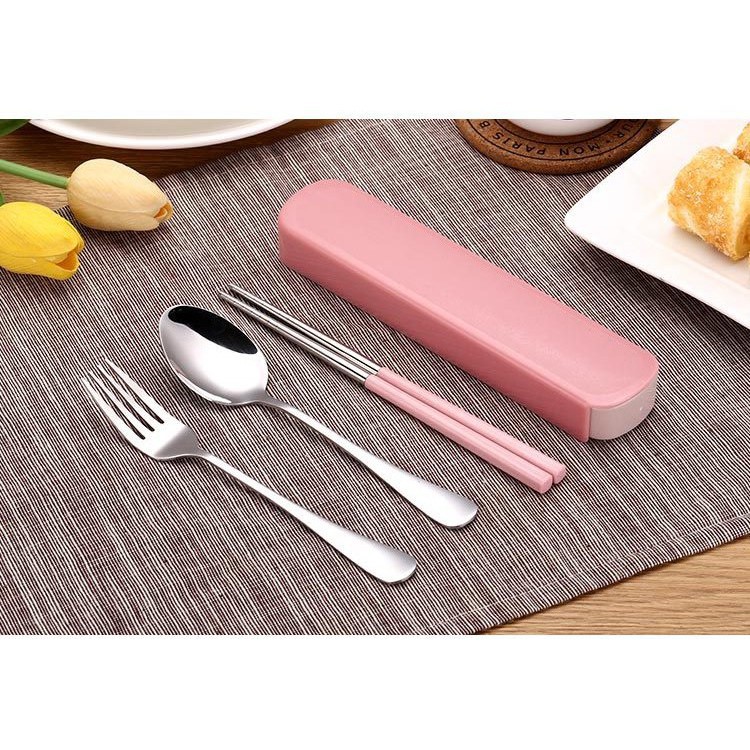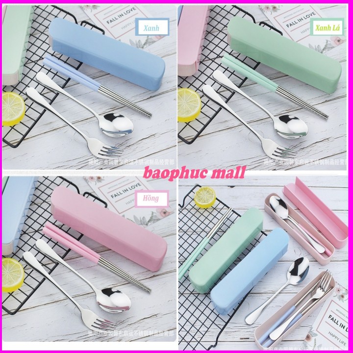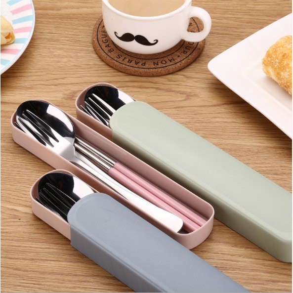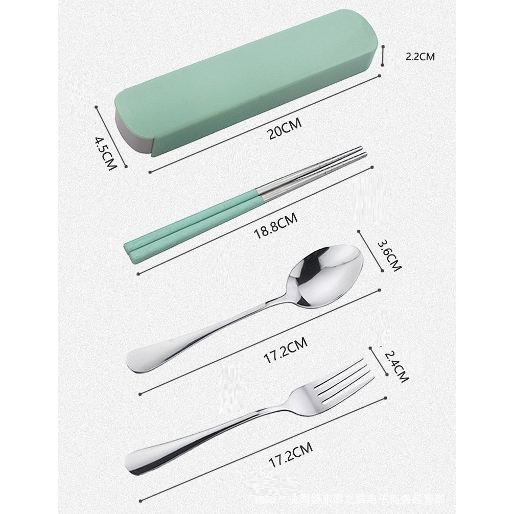 Bộ Muỗng Đũa Nĩa Bằng Thép Không Gỉ Tiện Lợi Du Lịch / Văn Phòng+Kèm Hộp Đựng Bằng Lúa Mạch.✨ Đựng trong hộp nhựa bột lúa mạch cao cấp, an toàn với sức khỏe; gọn gàng, vệ sinh, màu sắc nhẹ nhàng.