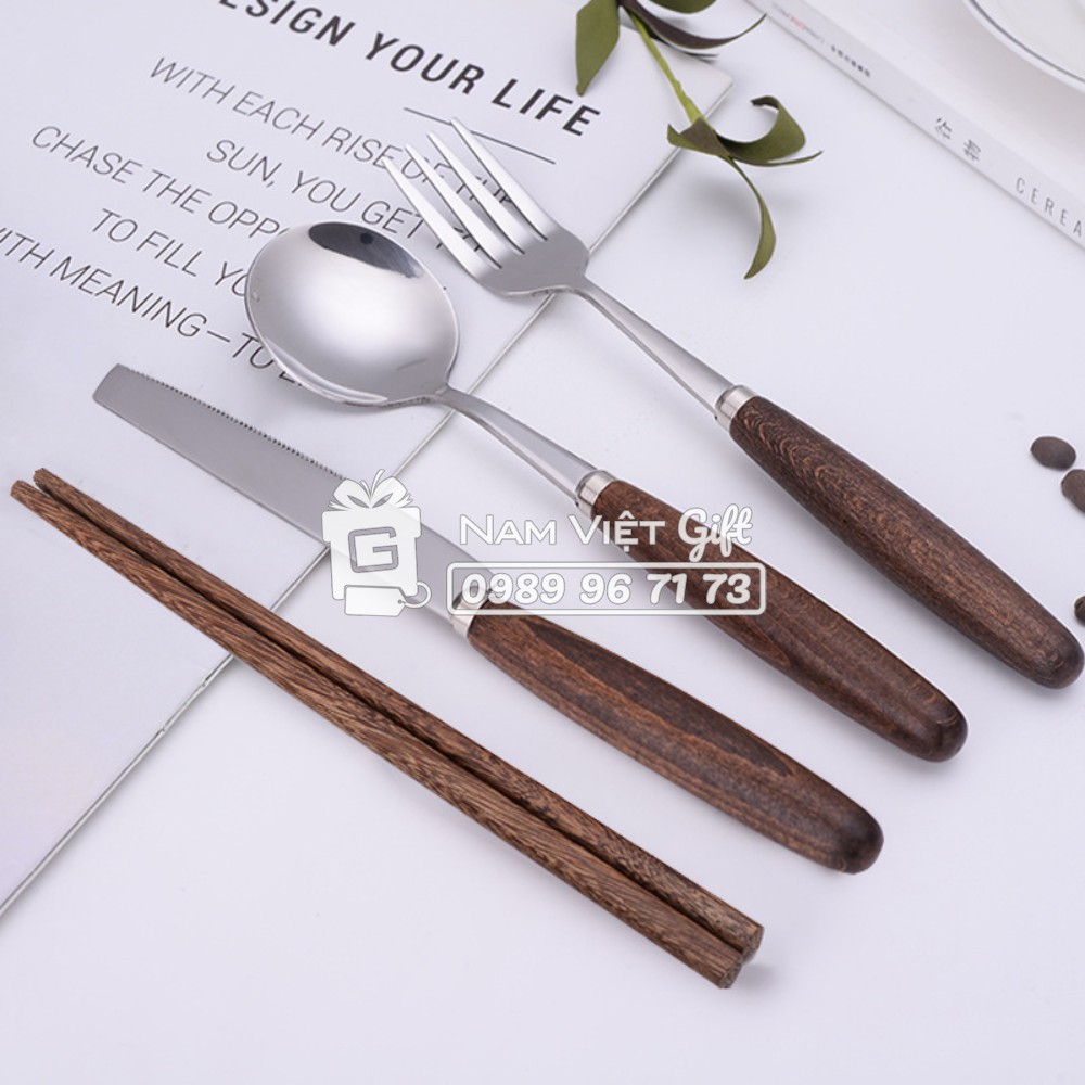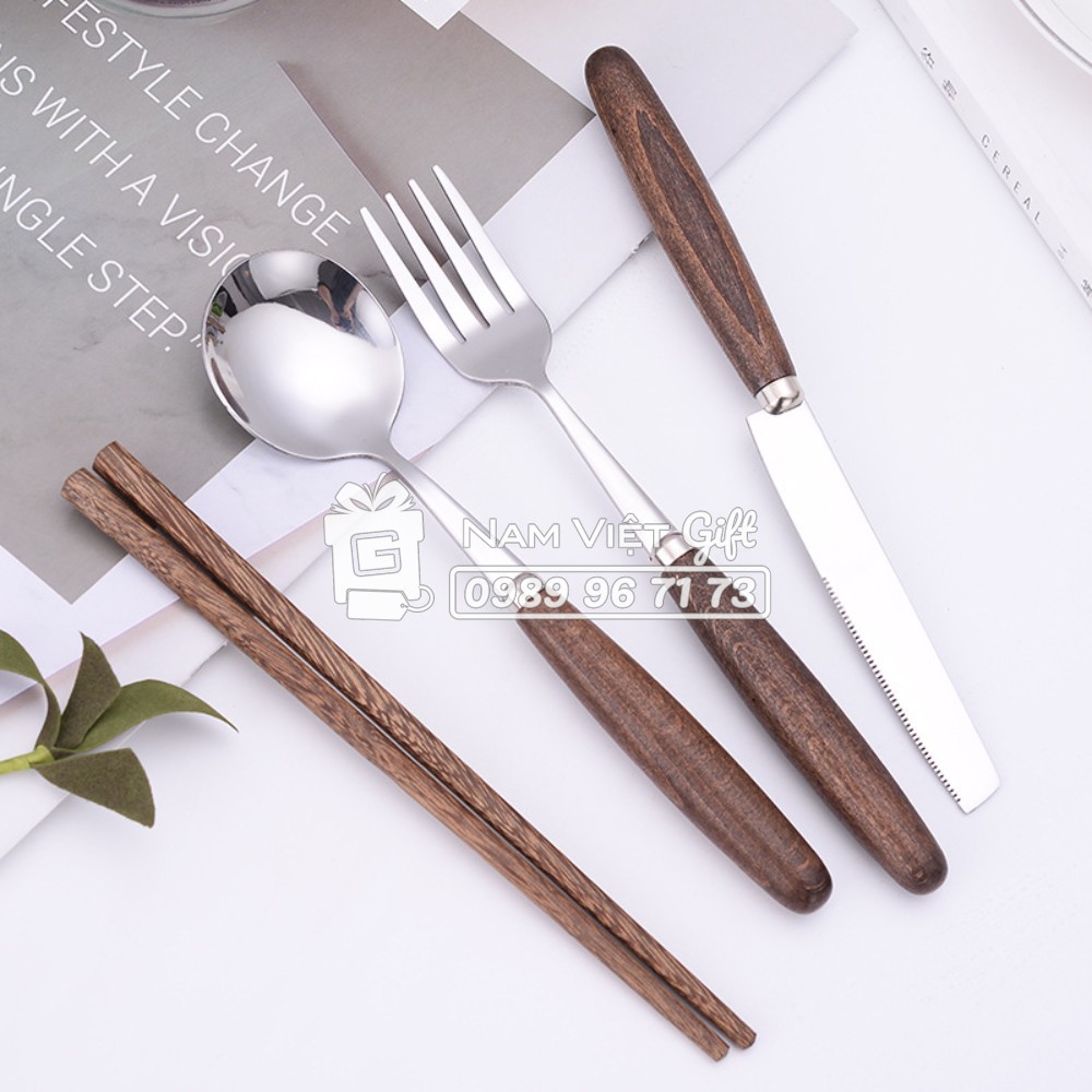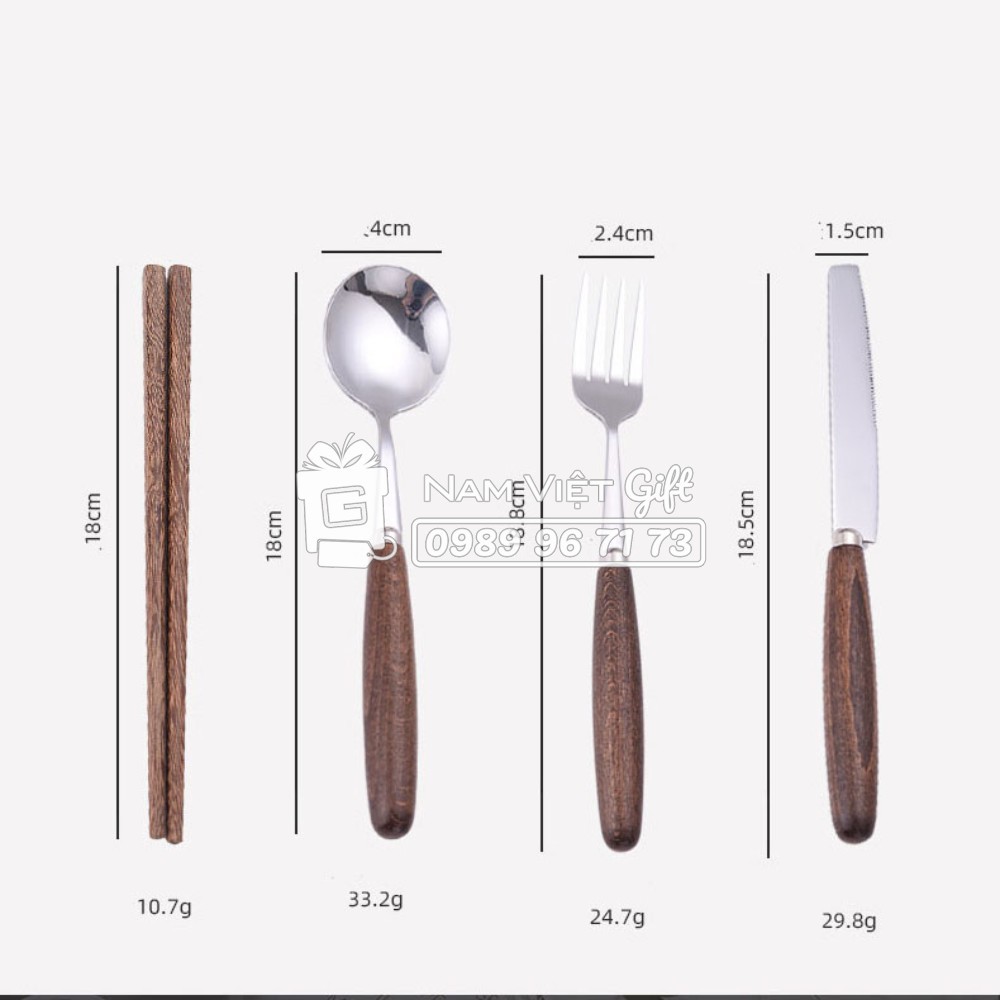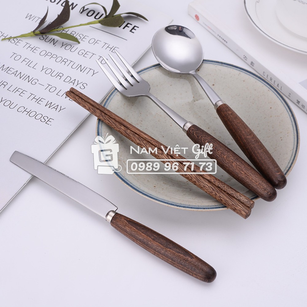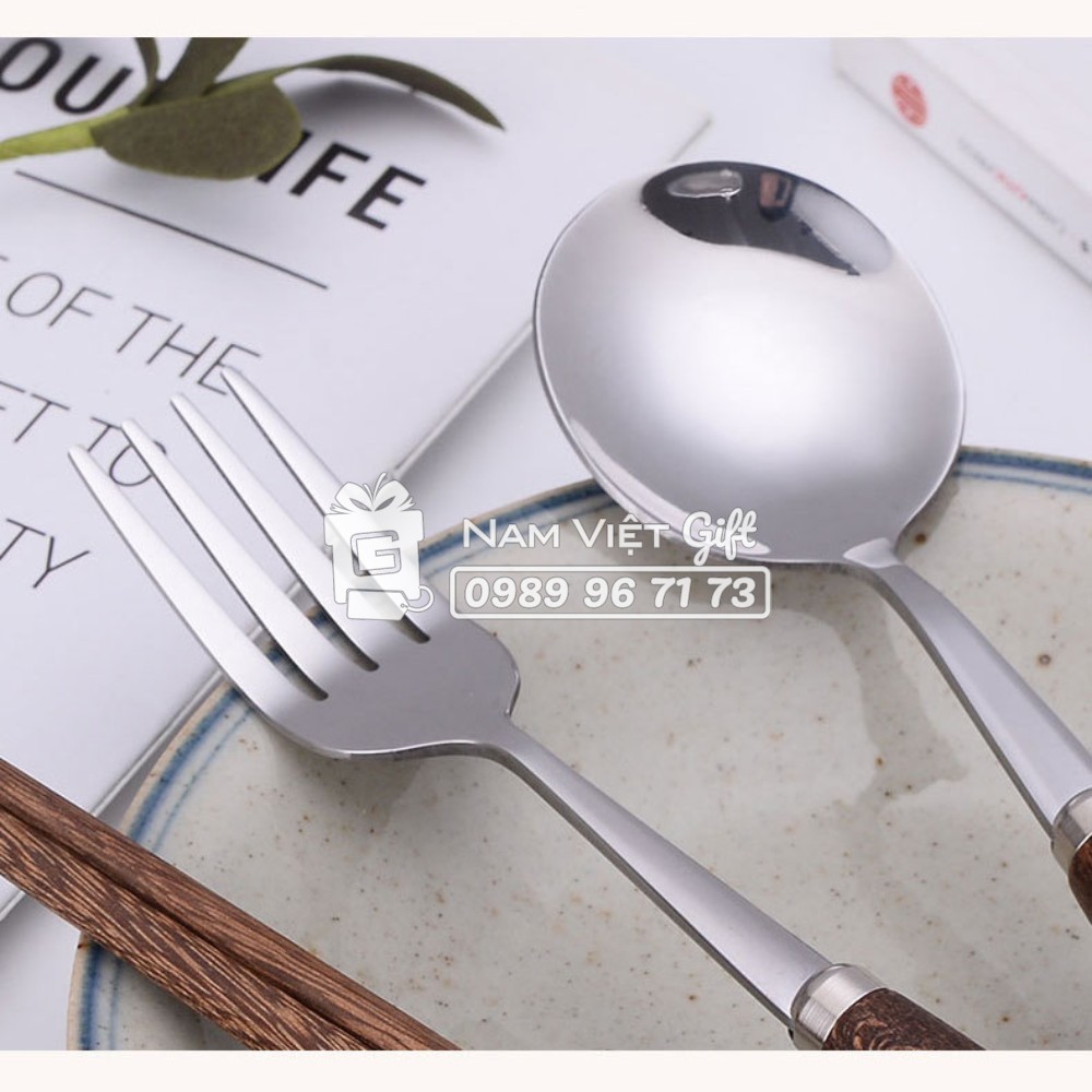 Bộ Muỗng Đũa Nĩa Dao Cán Gỗ Inox410 - Mẫu mới 2021
