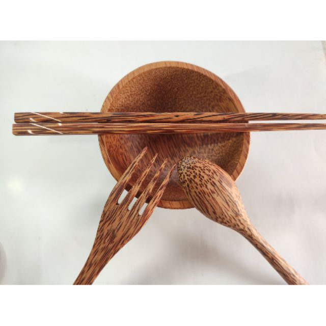 Bộ muỗng đũa nỉa gỗ dừa tự nhiên an toàn cho sức khỏe