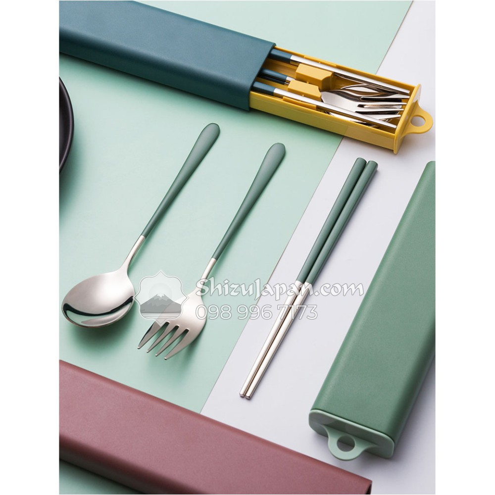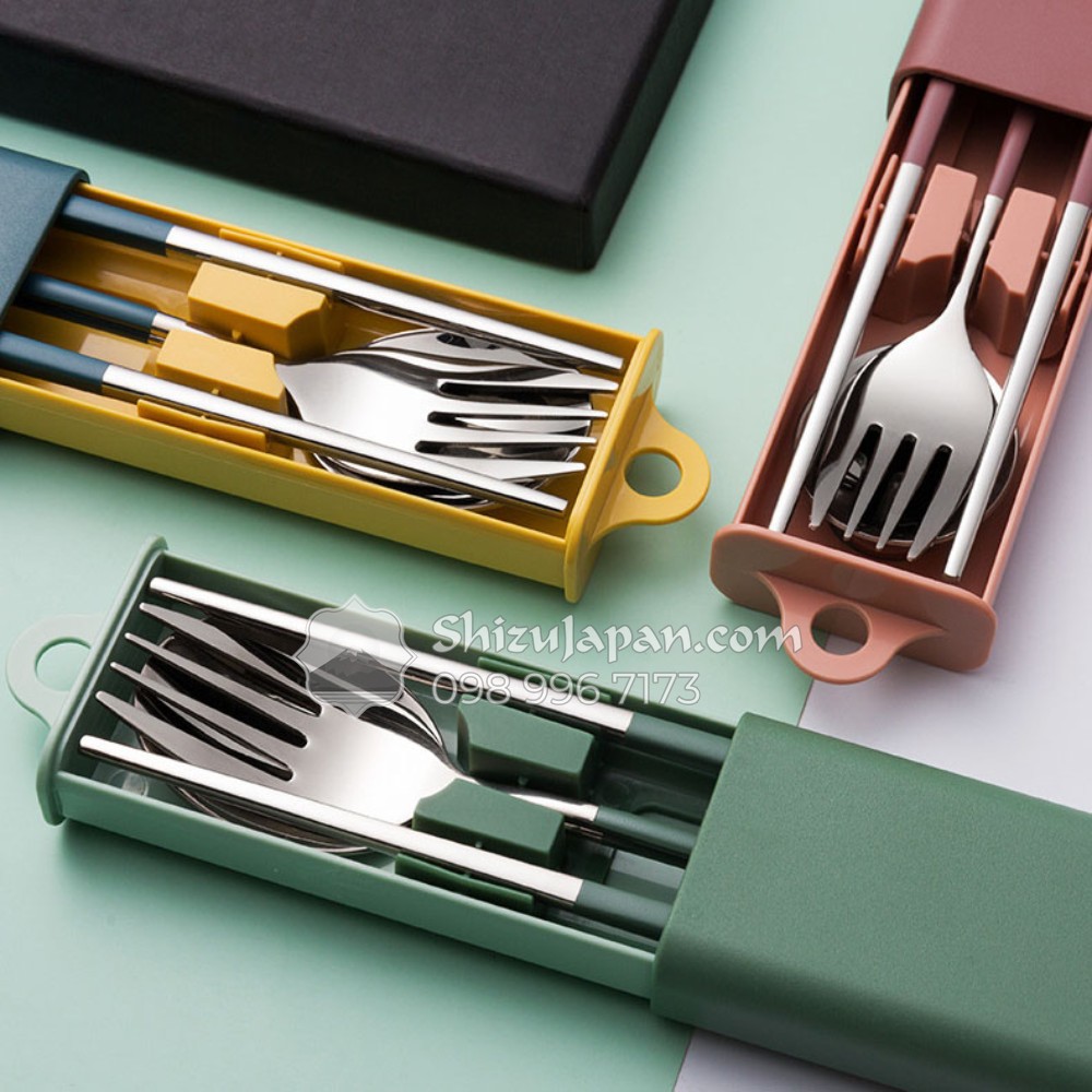 Bộ Muỗng Đũa Nĩa Inox 304 Nắp Trượt Phong Cách Hàn Quốc