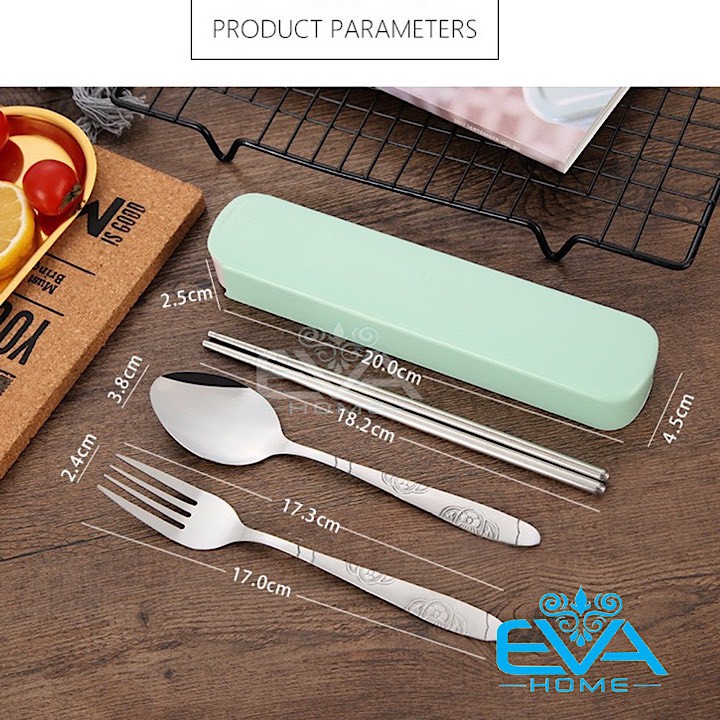 -Chất Liệu : Muỗng đũa nĩa bằng Inox, Hộp bằng nhựa màu lúa mạch