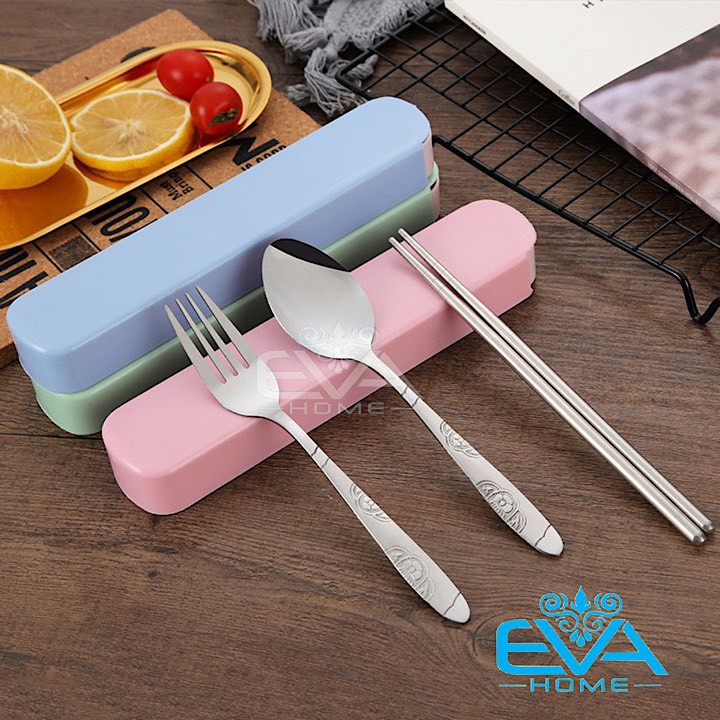 Bộ Muỗng Đũa Nĩa Inox Dùng Bữa Kèm Hộp Đựng Nhựa Lúa MạchMã Sản Phẩm :