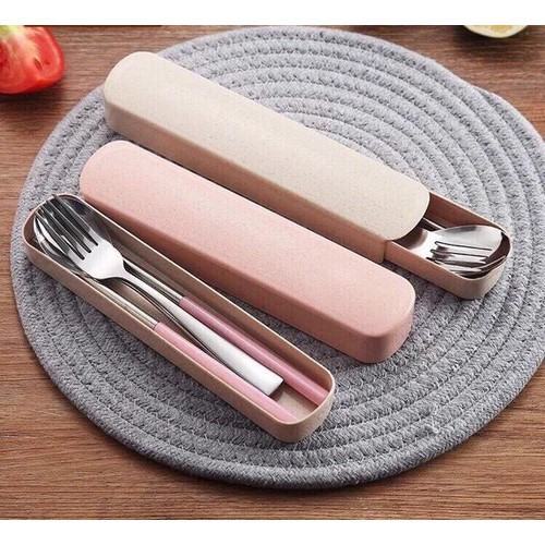 Bộ Muỗng Đũa Nĩa Inox Lúa Mạch Có Hộp Đựng Tiện Lợi