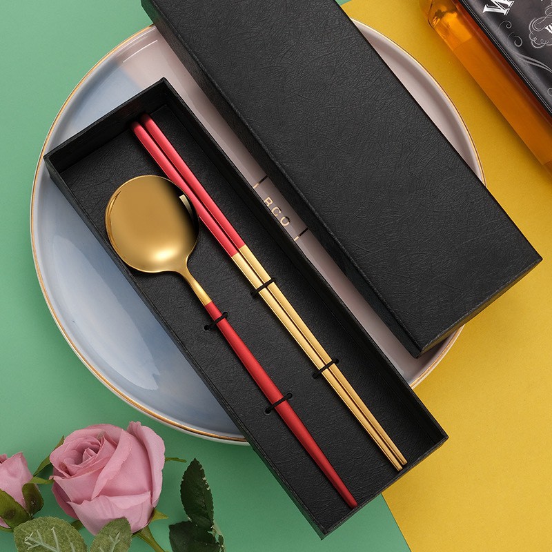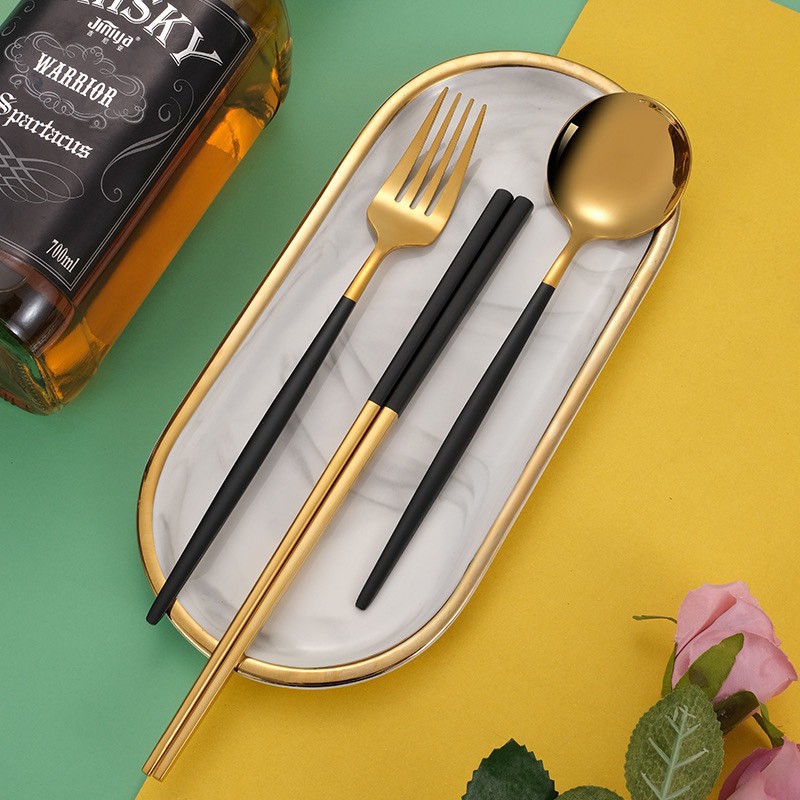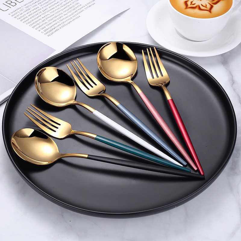 Bộ Muỗng Đũa Nĩa Thìa Inox 304 Cá Nhân Cao Cấp Cơm Trưa Văn Phòng Phủ Bóng Sang Trọng Full Màu
