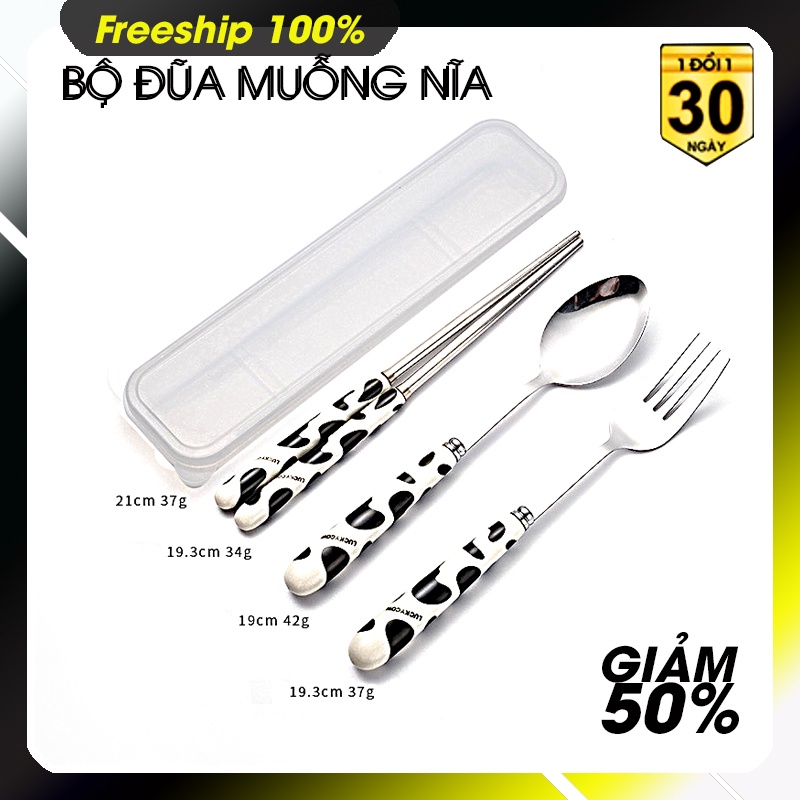 Nhà cửa & Đời sống > Dụng cụ nhà bếp > Cây vét bột & đồ gắp thức ăn || Bộ muỗng đũa nĩa văn phòng thép không rỉ 410 tay cầm bọc gốm sứ bò sữa - phong cách hàn quốcCòn hàng