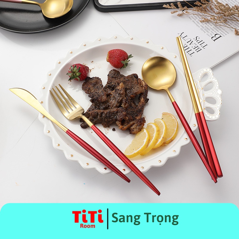 Muỗng đũa thìa nĩa dao Inox 304 không gỉ mạ vàng cao Dụng cụ cá nhân ăn cơm văn phòng TiTiRoom